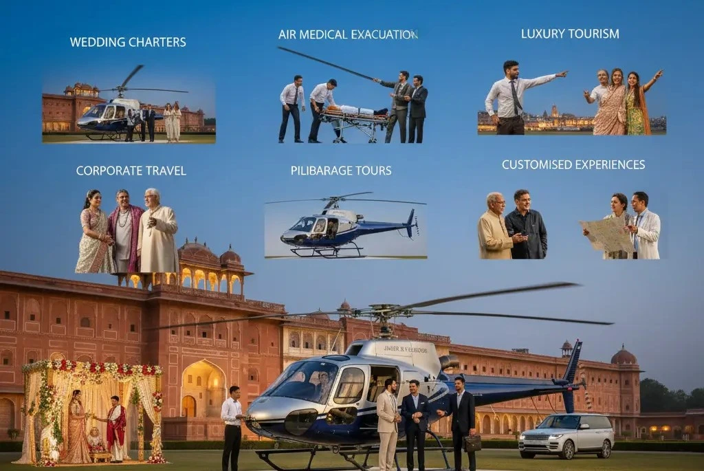 Helicopter rent in Jaipur varies with a number of factors which include type of helicopter, distance of travel, flying time, purpose of booking, and special factors. All the services such as helicopter booking in Jaipur for corporate traveling, tourism, helicopter booking for wedding, pilgrimage tours, or emergency services are designed according to the needs of the customer.